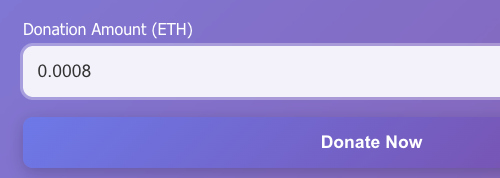 여기서 이더 현 가격을 기반으로 1달러가 몇 이더인지 미니멈 기부 어마운트가 금액 입력칸에 플레이스홀더로 보인다.