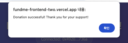 트랜잭션이 성공적으로 수행이 되면 팝업이 뜬다.