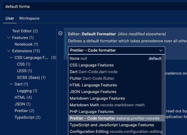 그래서 드롭다운 버튼 눌러서 Prettier로 손수 설정해 주었다.